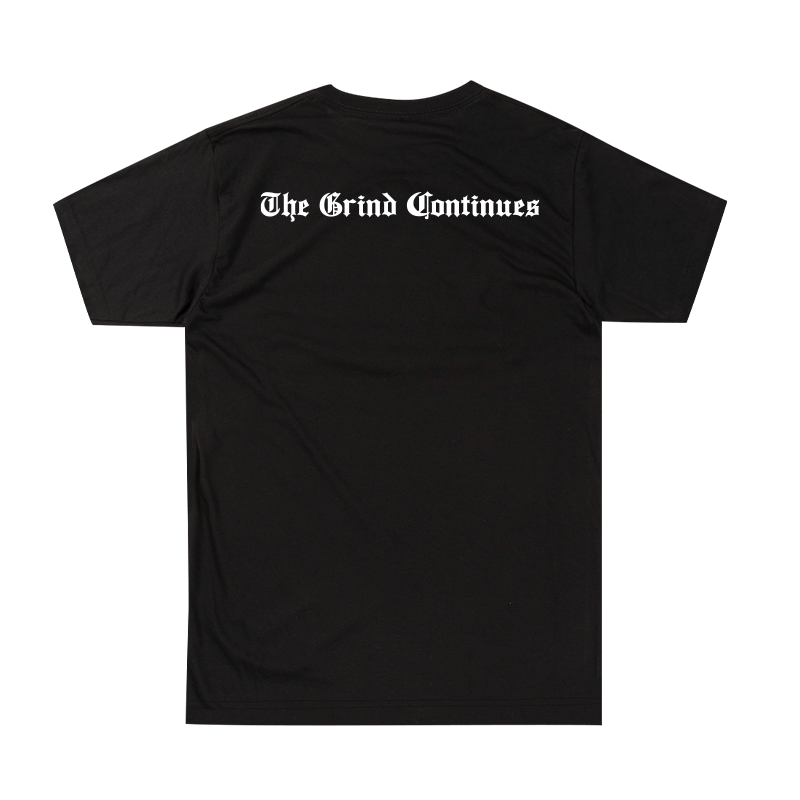 A minimalist NP Design with the "The Grind Continues" on the back.