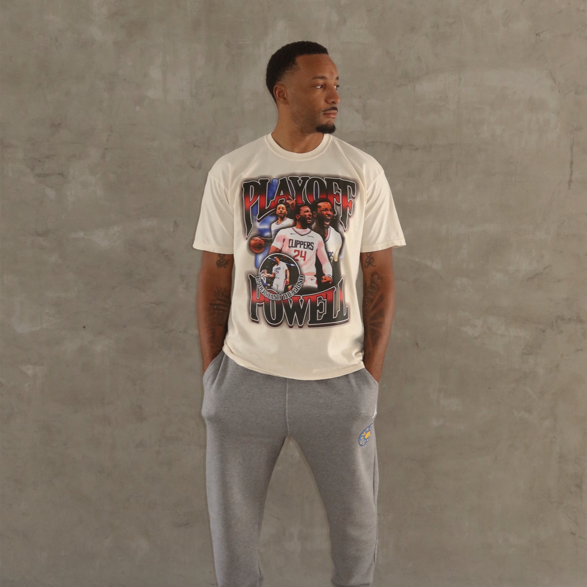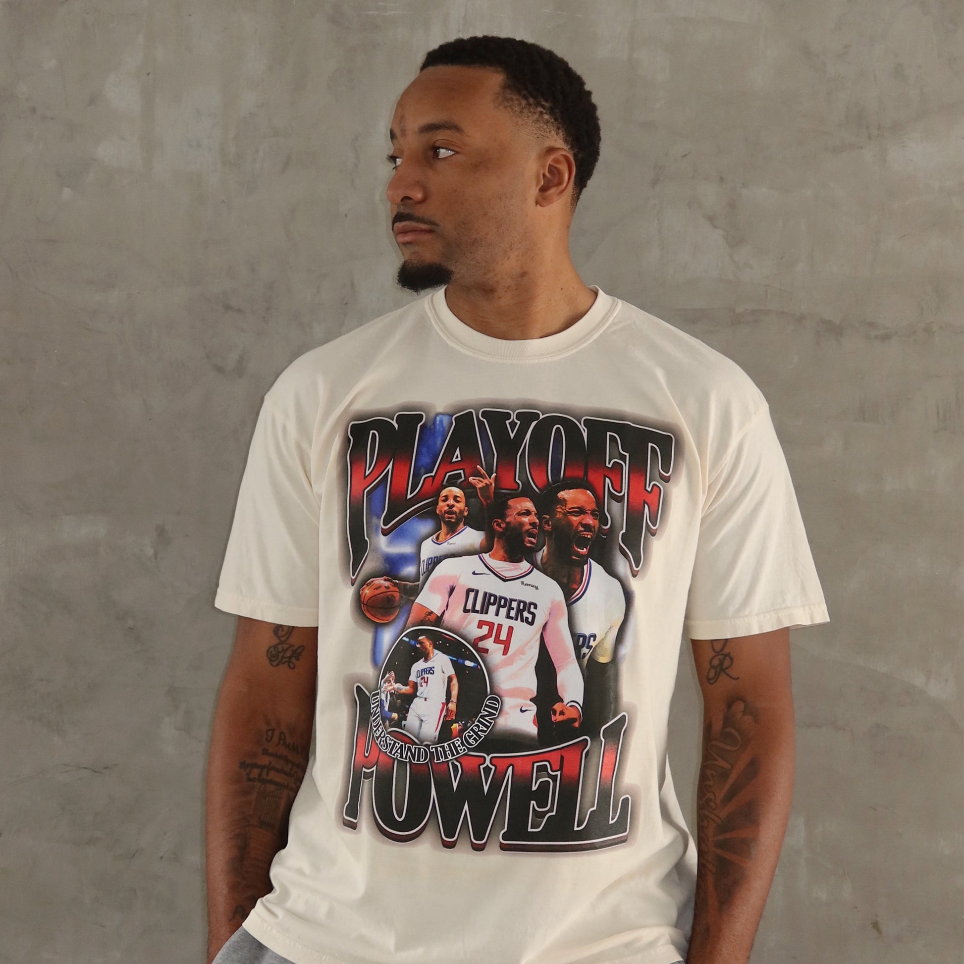 This vintage tee is Inspired by Norman Powell’s playoffs nickname, “Playoff Powell”.