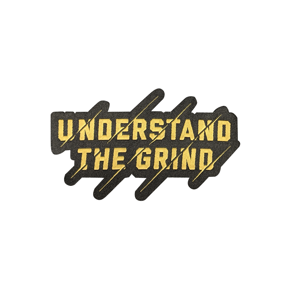A beautiful soft woven patch showcasing the classic words of "Understand the Grind" design.