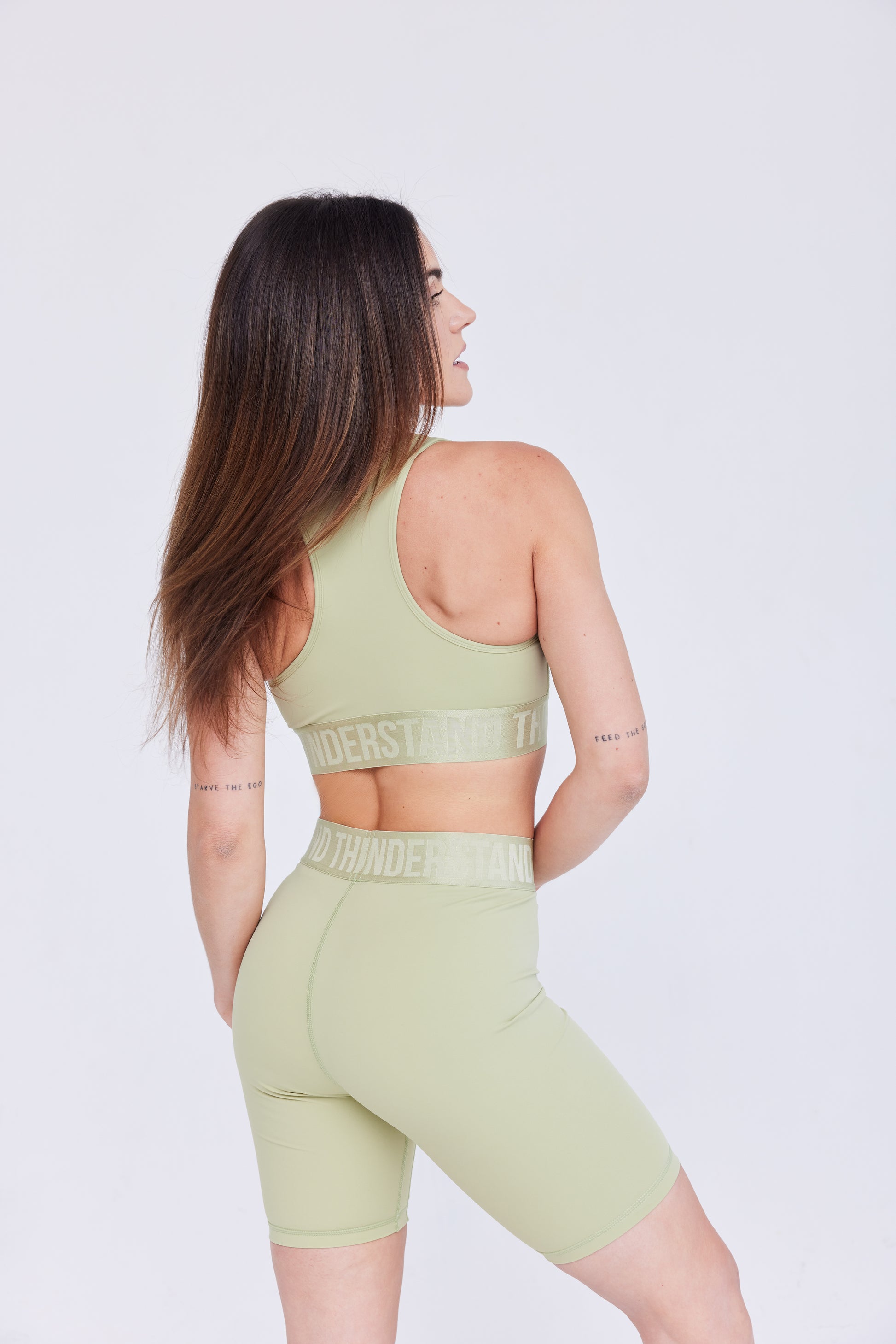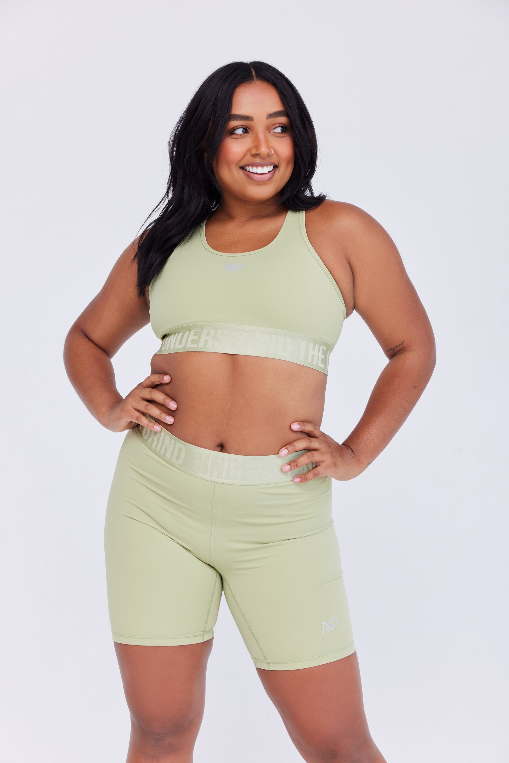 - The tonal elastic waistband complements the bra perfectly, creating a cohesive and stylish look.
